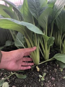 就労継続支援B型事業所「ビッグライト」では、地元農家さんの小松菜栽培から収穫、地域の物産展や農協への出荷をお手伝いさせていただいています。気温差が出てき始めているため、ハウス内の温度管理をこまめに農家さんと打ち合わせしています。