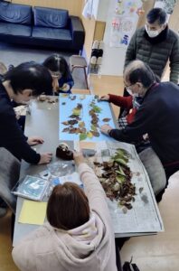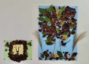 散策で落ち葉を拾い、後日、落ち葉アートにチャレンジ。素敵な作品が出来上がりました!
