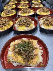 お節の翌日は、食欲をそそる穴子飯。穴子の長い姿にあやかり、「末永くお元気で」という願いと、皆様の運気がさらに上昇するようにとの想いを込めてます。