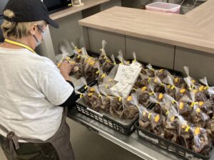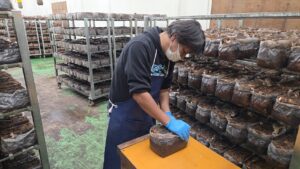 就労継続支援B型事業所「夢語り庵」では、菌床椎茸の栽培から出品準備や田川で生産された小松菜の袋詰めを作業として行っています。
