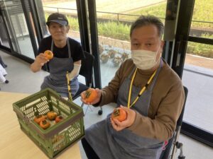 また今月は、地域の方よりお譲りいただいた柿を丁寧に拭き上げ、季節限定の商品として出品しております。